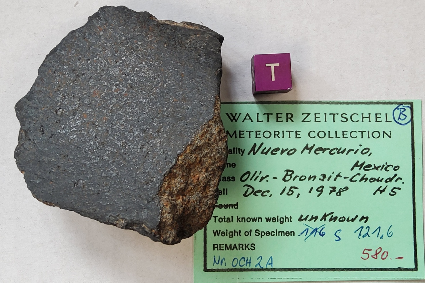 Chondrite H5, 121gr., witness fall 15.Dezember 1978, Mexico, little broken individual, crusted with some flowlines