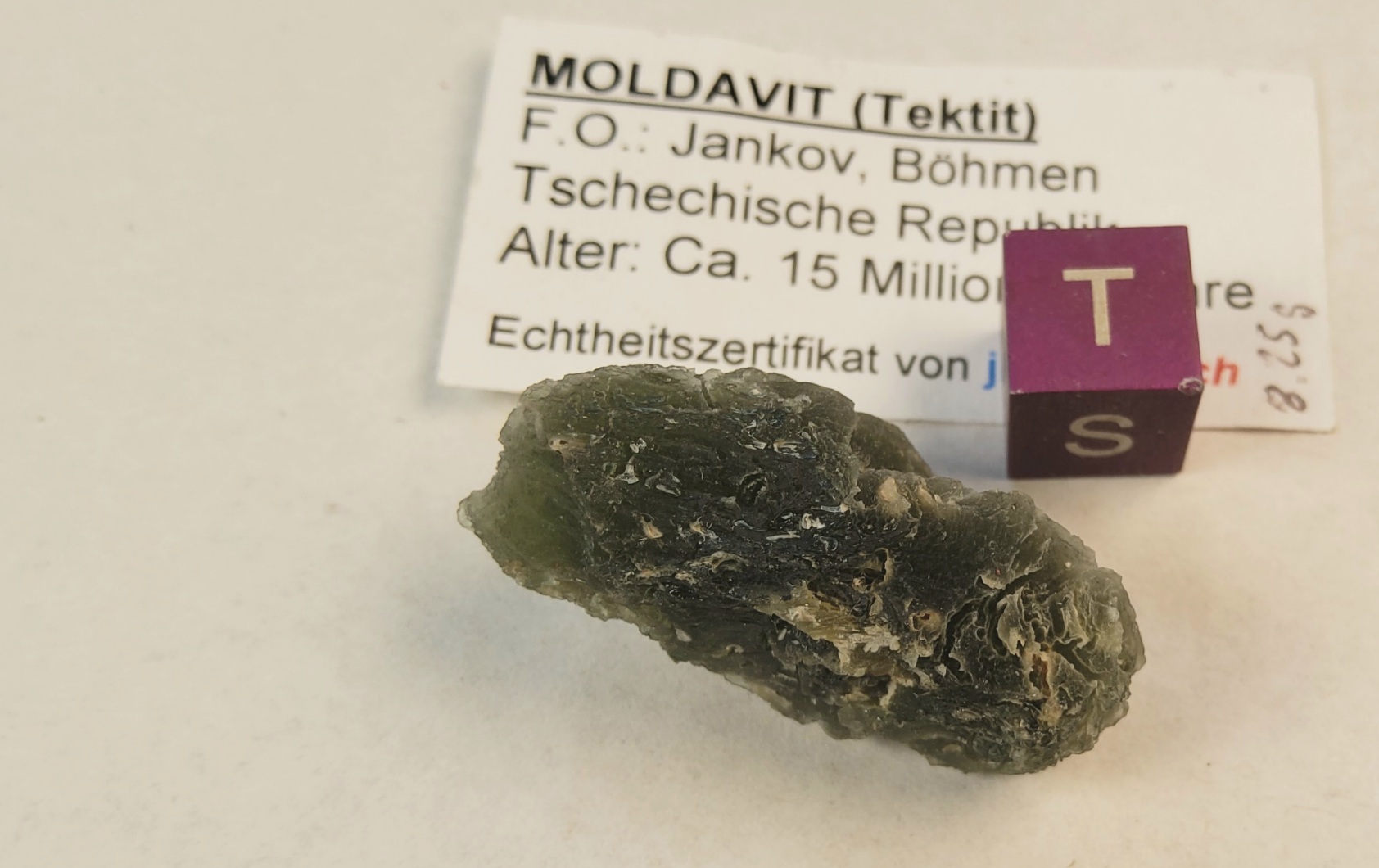 Moldavite 8.25gr, found in Jankov, Bohemia , genuine etching